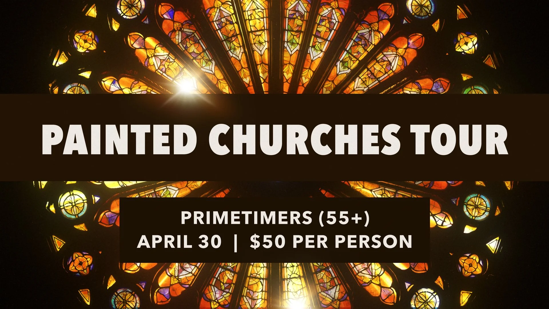 Primetimers (55+) Trip to Painted Churches Thursday, April 30, 2026 9:00 AM 5:00 PM Google Calendar ICS Primetimers will be taking a trip to The Painted Churches of Schulenburg. Cost is $50 per person and includes transportation, lunch, and guided tour. Click the button below to register. click here to register